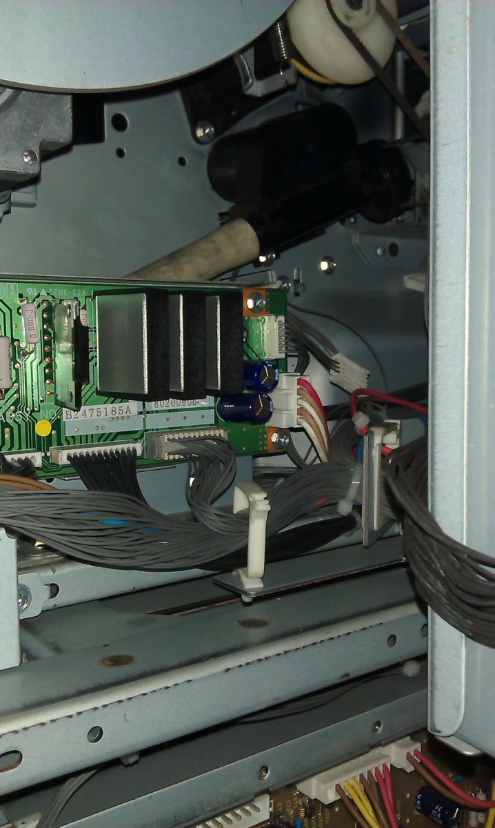 1. Bạn tháo nắp sau máy, vệ sinh cây súng mực thải (hệ thống chuyển mực thải về bình mực thải đó),chắc nó bị nghẹt rùi,ko quay được hay sensor súng mực thải dơ .kiểm tra kỹ lại làhết báo thôi Con sensor này nằm sâu đằng sau của mainboard: (trước khi tháo ra -bạn phải chú ý cách lắp dây curoa lại)(Đường thải nằm chéo) nếu không sẽ gặp nhiều bất cập đó. (không nên tắt công tắc số 3 ở pan này).